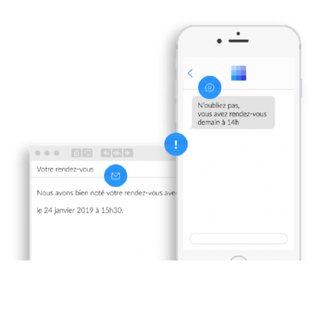 Un e-mail de confirmation est envoyé au client à chaque rendez-vous pris et un SMS de rappel est envoyé la veille du rendez-vous.